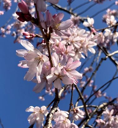 枝垂桜がほぼ満開だったので写真を撮りました。
